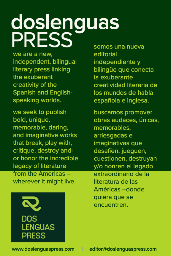 is an independent, bilingual literary press (a project of Casa de Duende) dedicated to linking the “exuberant creativity” of the Spanish- and English-speaking worlds through the publication of bilingual literature in translation.